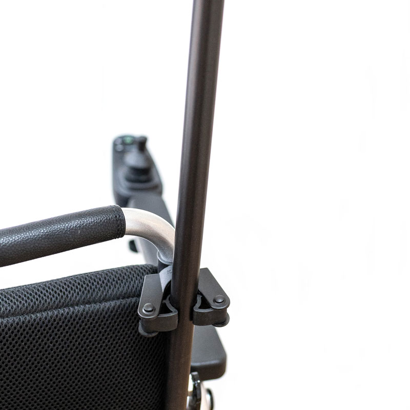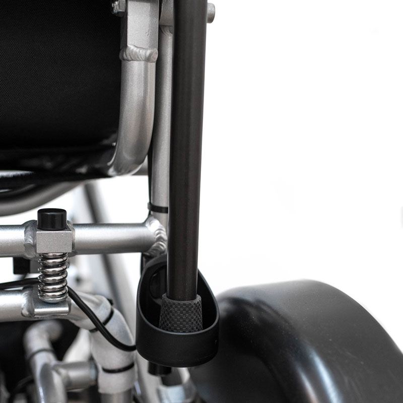 The Eloflex Crutch Holder is an indispensable accessory for individuals seeking a convent solution for carrying crutches or a cane with you. The crutch holder fits all crutches and canes with standard dimensions and does not need to be adjusted if you switch between different canes or crutches. You attach the crutch holder using the included Torx head screws, which can be fastened to the frame of your Eloflex.