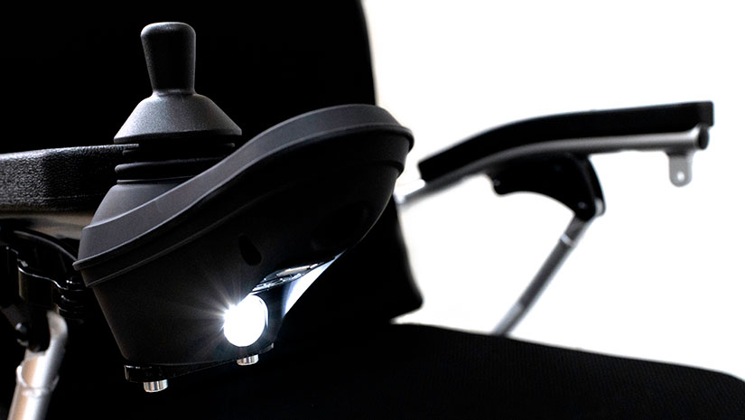 Model A gives you the flexibility to choose the ideal setup for your needs. For instance, the joystick can remain on the armrest as usual if you prefer, giving you the option to retake control when necessary. The new joystick also has a light that illuminates the path ahead, although this feature can only be used when driving without the attendant control.