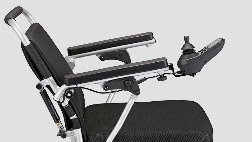 Eloflex L is a compact, no-nonsense power wheelchair for “no fuss” people on the move. It conveniently folds in seconds, making it easy to take with you when traveling by car or by plane.