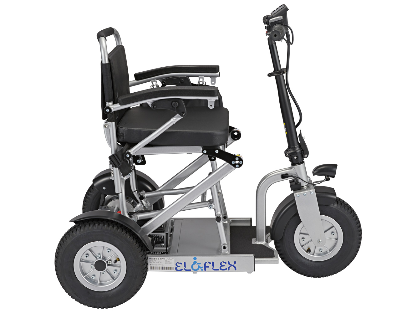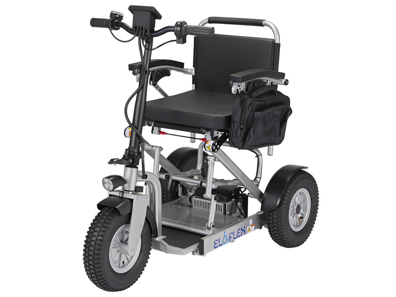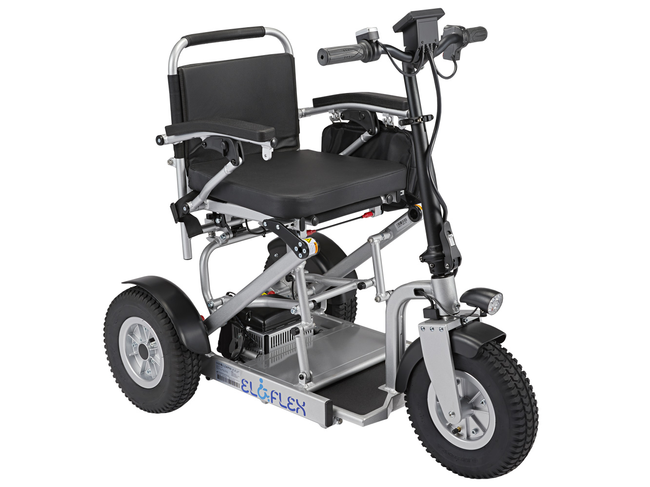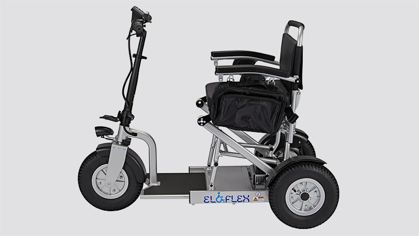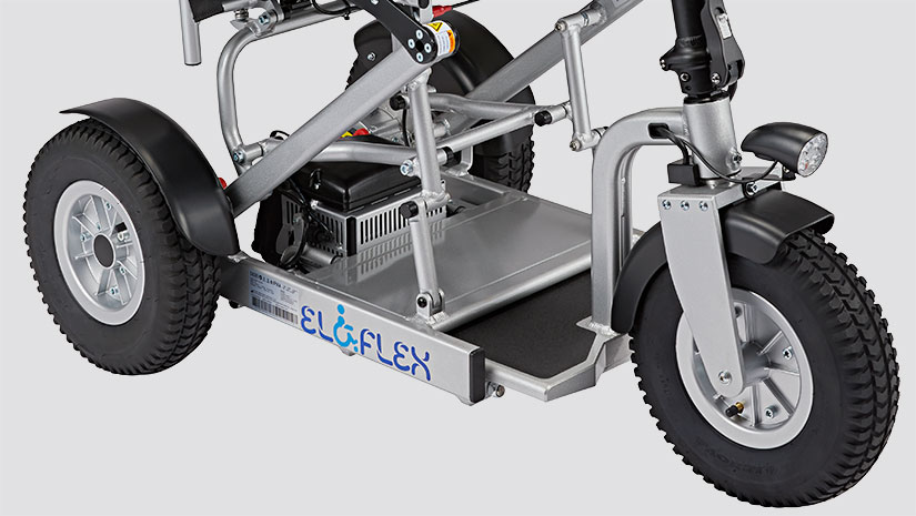 Much like our power wheelchairs, the Eloflex S1 hybrid scooter is foldable, making it easily to collapse and bring on your travels. At the press of a button, you can choose the scooter’s length (105-120 cm) to suit the driving environment. In the longer position, you can enjoy rapid, stable, and safe rides, even on rough terrains. In the shorter position, the scooter becomes more compact for nimbly navigating shops, restaurants and other indoor environments.