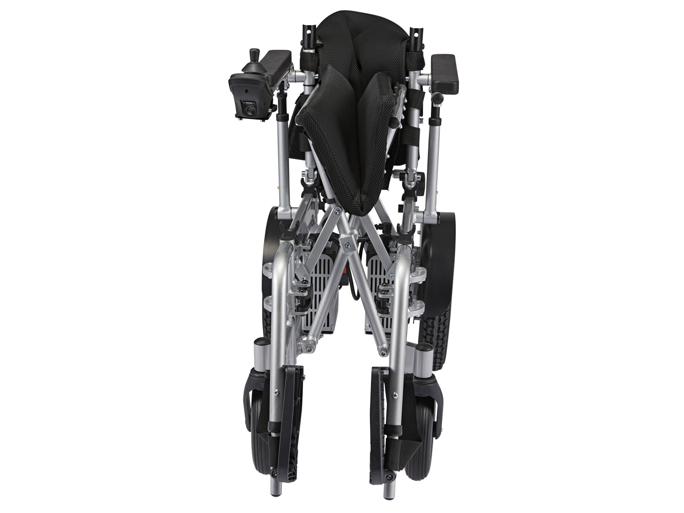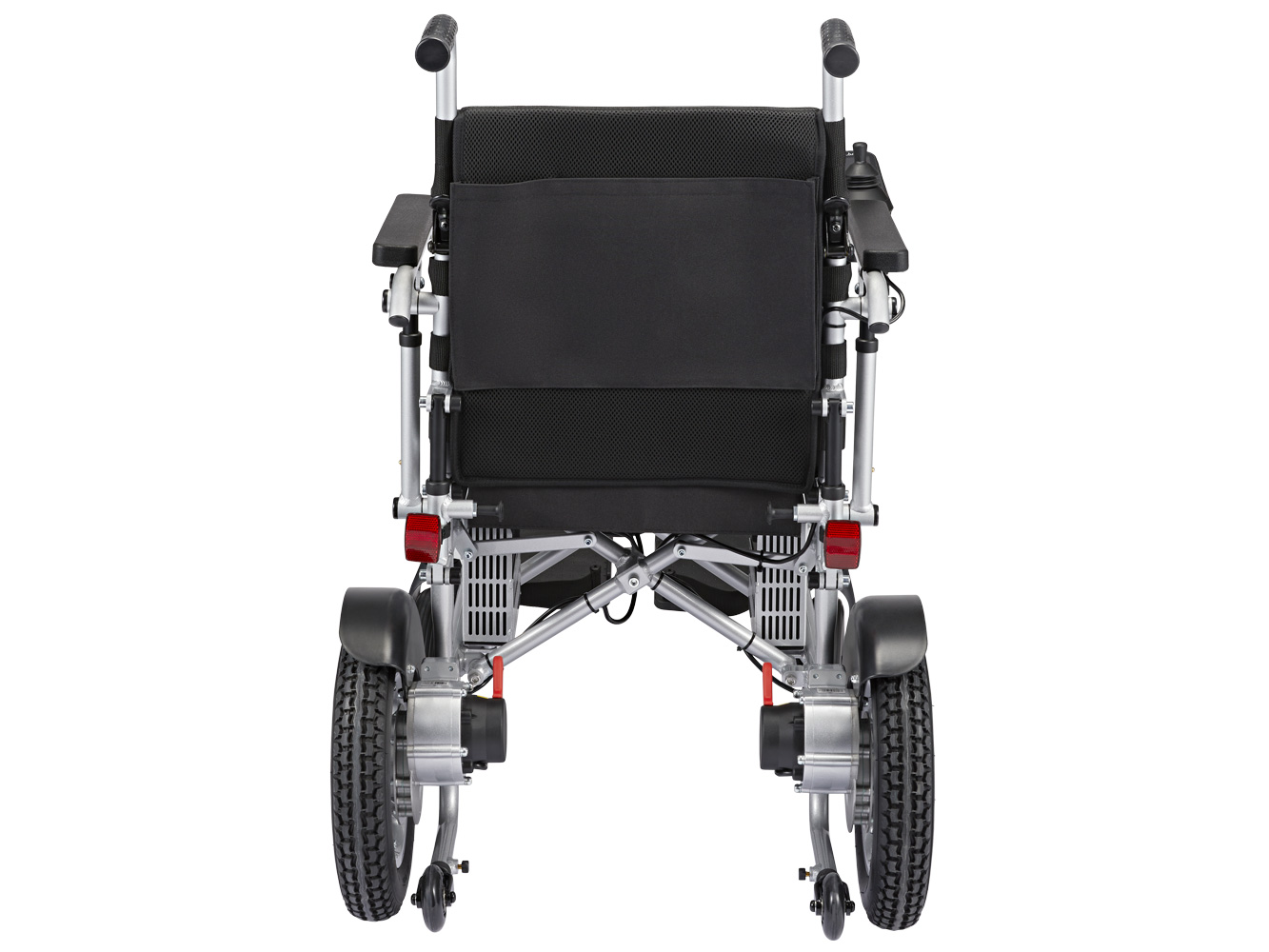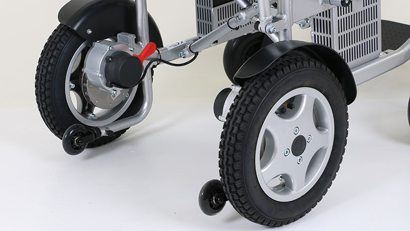 Located behind the backrest, the classic wheelchair steering handles make it easy for a family member or caregiver to push the chair manually. They also provide excellent support if users want to use their power wheelchair as a walker for short distances.