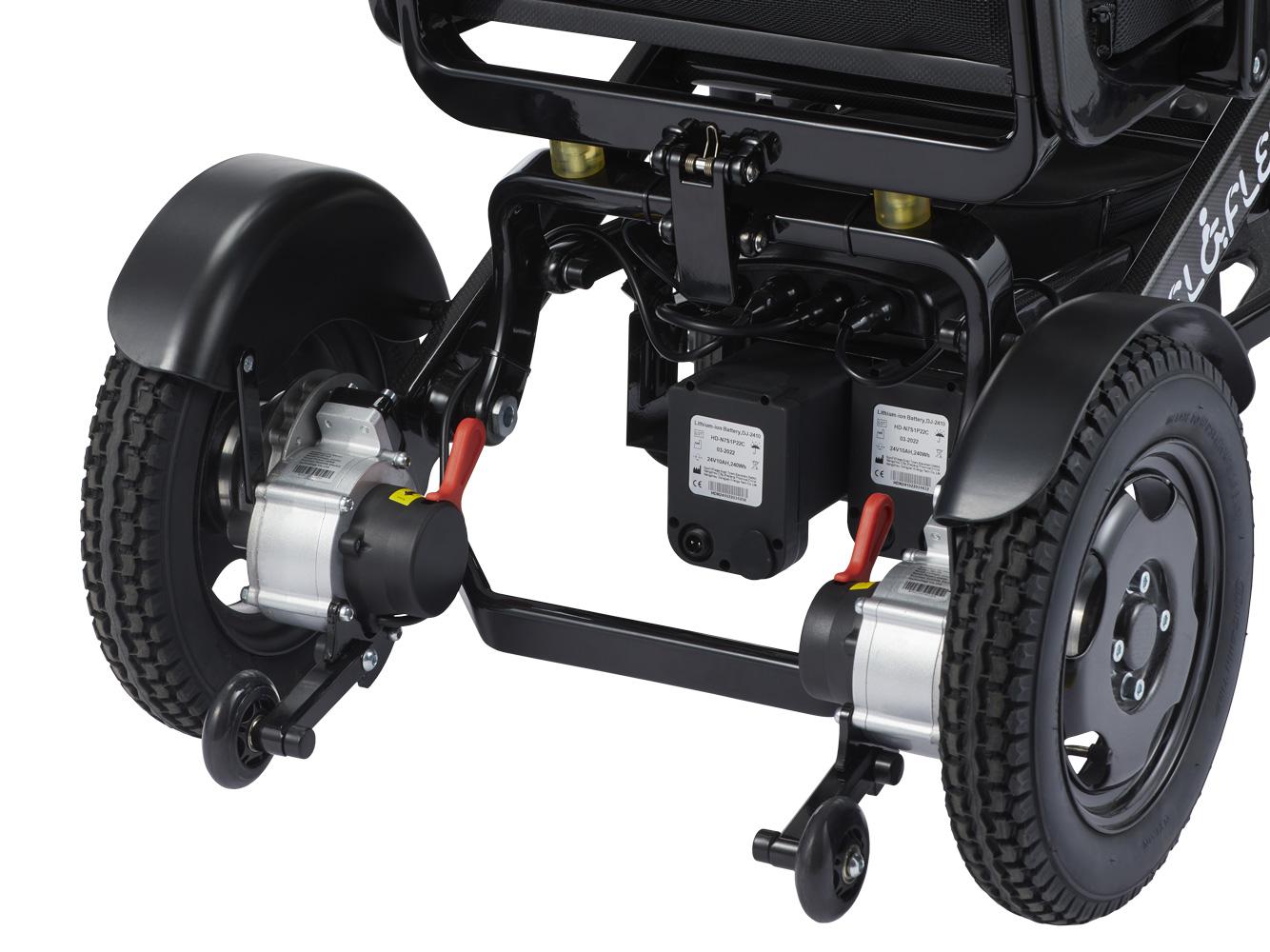 Renowned for its incredible strength-to-weight ratio, carbon fiber is a favored material in applications like bikes, cars, boats, airplanes and structural engineering. Why not bring these benefits to power wheelchairs as well? Our carbon fiber frame isn’t just remarkably lightweight; it upholds uncompromising durability, ensuring a smoother and more enjoyable driving experience.